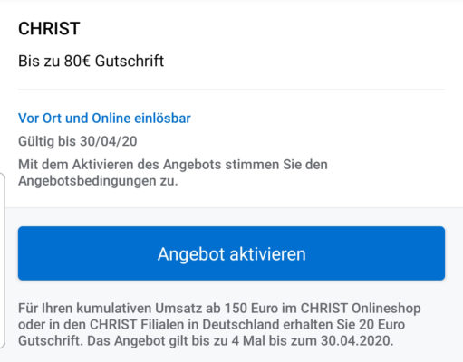 | CHRIST | 25€ Gutschrift ab 200€ Umsatz – 3 x einlösbar *TOP* | 15.11.2021 |