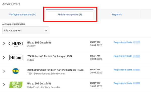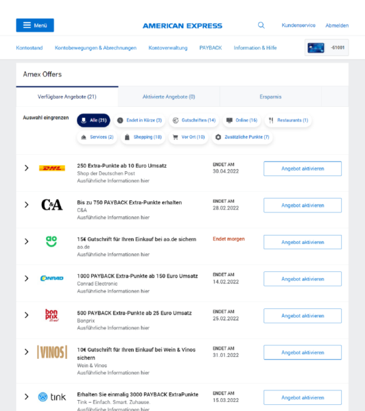 Wenn ihr in der Amex-App oder über das Amex Online-Konto die Offers durchgesehen habt und ein passendes für euch dabei ist, dann müsst ihr es mit einem Klick aktivieren. Ab da läuft alles automatisch. Ihr geht einkaufen oder bestellt euch etwas im Internet, bezahlt mit eurer Amex Karte und das aktivierte Offer wird automatisch berücksichtigt.