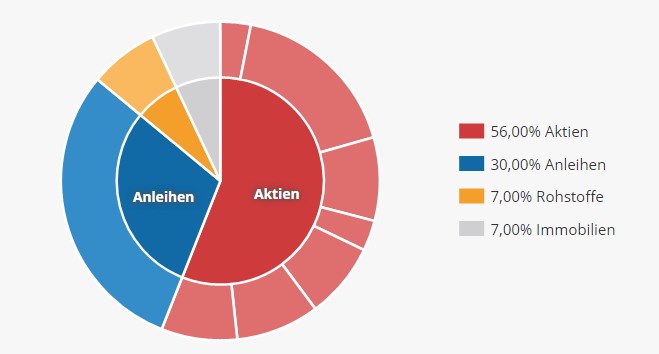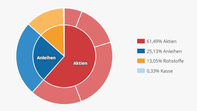 Das Ziel des ARERO Weltfonds besteht darin, eine attraktive Streuung auf Grundlage einer optimalen Rendite-Risiko-Mischung zu erreichen. Die Gewichtung im ARERO Weltfonds besteht aus 60% Aktien, von 20% Renten und 15% Rohstoffen.