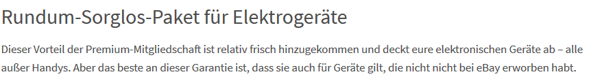 Dieser Vorteil der Premium-Mitgliedschaft ist relativ frisch hinzugekommen und deckt eure elektronischen Geräte ab – alle außer Handys. Aber das beste an dieser Garantie ist, dass sie auch für Geräte gilt, die nicht nicht bei eBay erworben habt.