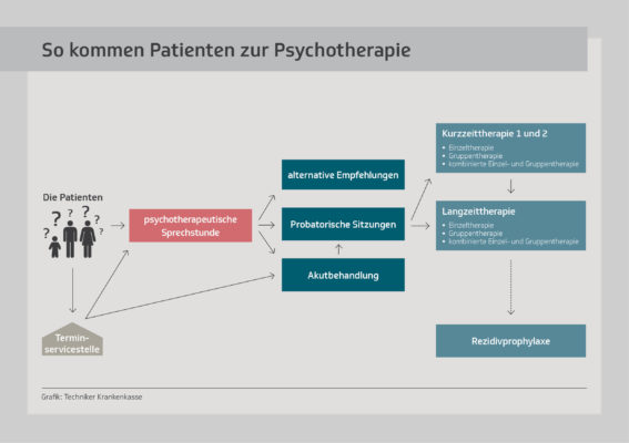 Seit dem 1. April 2017 gibt es umfangreiche Neuregelungen in der ambulanten Psychotherapie, die auch die genannten Terminservicestellen betreffen. Dort können Patienten nämlich jetzt anrufen und nach freien Sprechstunden-Plätzen oder Akutbehandlung fragen. Dafür benötigt man dann auch keine Überweisung, nur die Versichertenkarte. So können Patienten hoffentlich schneller und unkomplizierter die benötigte Behandlung bekommen.