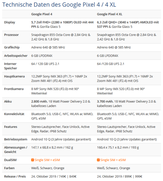 Google Pixel 4 & Pixel 4 XL mit Dual-Cam & 90 Hz Display