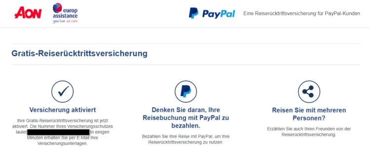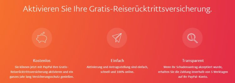 - Die Aktivierungskosten der Gratis-Reiserücktrittsversicherung übernimmt PayPal automatisch