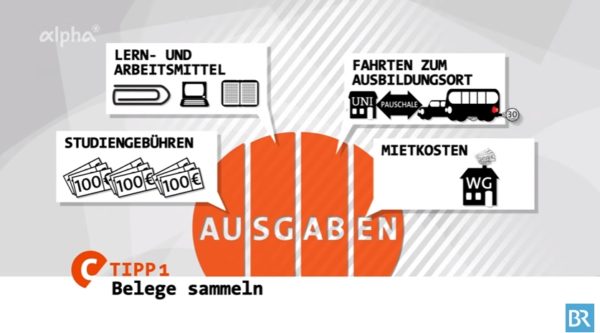 - Alle Belege über entstandene Kosten sorgfältig aufheben und abheften, dazu zählen beispielsweise: Computer, Fachbücher, Büromaterialien, Studiengebühren, Fahrtkosten und eventuelle Kosten für die Studentenwohnung (Stichwort: doppelte Haushaltsführung), also alles, was ihr an Lernmaterialien und Gebühren fürs Studium zahlen müsst.