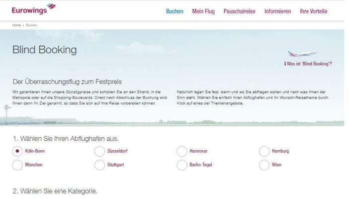 - Eurowings – Abflughafen und Kategorie wählen und buchen – ab 49,99€
