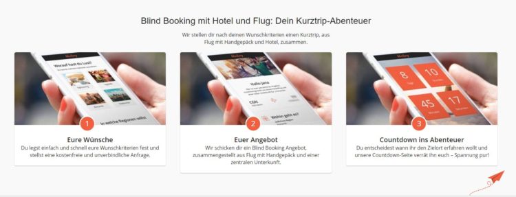- Blookery – Wunschkriterien festlegen, Blind Booking Angebot mit Flug und Unterkunft bekommen, buchen