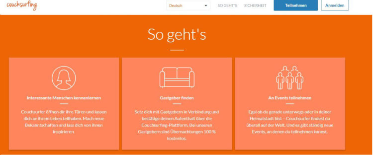 - Couchsurfing.com – bei Einheimischen übernachten und selber Leute aus der ganzen Welt aufnehmen