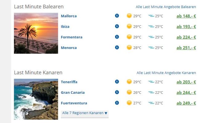 - HolidayCheck – Last Minute Angebote werden nach Reisezielen sortiert und euch vorgeschlagen