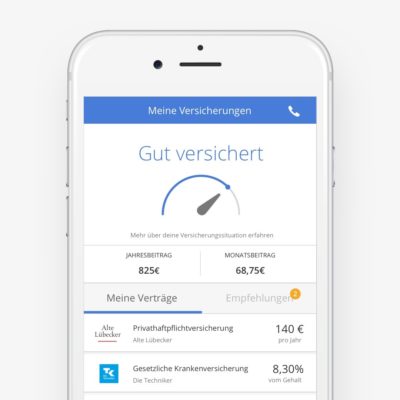 Das Schweizer Unternehmen punktet vor allem im Thema Leistungsangebot. Mit über 200 Versicherungsgesellschaften als Kooperationspartner stellt FinanceFox den Primus der Insurtechs dar. Des Weiteren bietet der schweizer Anbieter gute Einstiegsangebote an, darunter eine kostenlose Handyversicherung oder 20€ Amazon.de-Gutscheine für jede eingetragene Versicherung. Ebenfalls bietet FinanceFox an, nach alternativen Versicherungsangeboten zu suchen. Das Insurtech wirbt damit, bis zu 1000€ pro Jahr einsparen zu können. Ein Schwachpunkt der App ist, dass die Policen von Familienmitgliedern nicht in einer Übersicht zur Verfügung stehen.