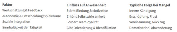 Psychologische Einflussfaktoren auf die Anwesenheit