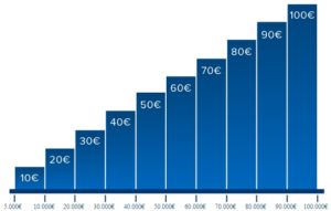 Bei Savedo ist die Höhe des Bonus an die Anlagesumme gebunden, aber unabhängig von der Laufzeit. Der Bonus gilt für Einlagen ab 5.000€ und steigt je nach veranlagter Summe von 10€ auf maximal 100€ pro Festgeldanlage an. Wenn man mehrere Festgeldkonten bei unterschiedlichen Banken eröffnen, kann der Bonus je nach investierter Gesamtsumme die 100€ übersteigen.