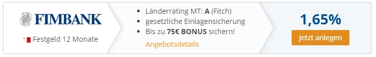- Malta: 1,65% für 1 Jahr (FIMBank)