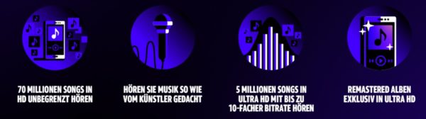 - Mit mehr als 70 Millionen Songs in High Definition (HD) und Millionen Songs in Ultra High Definition (Ultra HD)