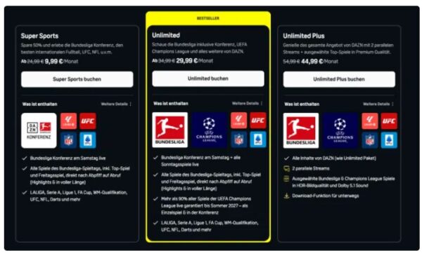 - DAZN Unlimited Plus Jahresabo fĂŒr 44,99âŹ/Monat