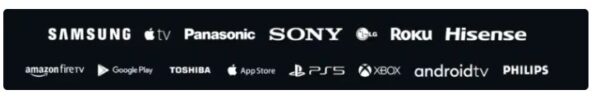 - Apple TV, Android TV, Roku