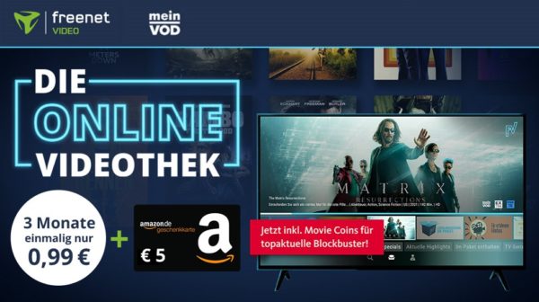*4€ GEWINN* 3 Monate freenet Video für 0,99€ + 5€ Amazon.de*-Gutschein – z.B. Matrix Resurrections mit Gewinn ansehen