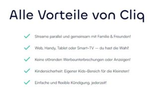 Darüber hinaus bietet Cliq benutzerfreundliche Funktionen wie personalisierte Empfehlungen, das Anlegen von Wiedergabelisten, die Möglichkeit, Inhalte herunterzuladen und offline anzusehen sowie eine nahtlose Integration mit verschiedenen Geräten und Plattformen. Dadurch können Abonnenten ihr Unterhaltungserlebnis nach ihren eigenen Vorlieben und Zeitplänen gestalten.