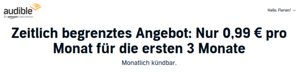 Nach Ablauf des Aktionszeitraums von 3 Monaten kostet das Audible Abo 9,95 €/Monat.