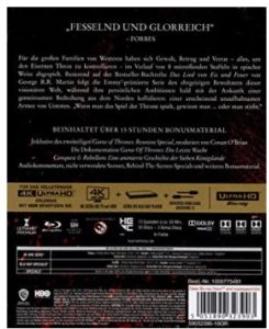 - Basierend auf der überaus erfolgreichen Buchreihe „Das Lied von Eis und Feuer“ von George R.R. Martin folgt die Emmy-prämierte Serie den ehrgeizigen Einwohnern dieser visionären Welt und ihren persönlichen Ambitionen, die sehr bald mit dem Erscheinen einer gemeinsamen Bedrohung aus dem Norden kollidieren: einer anscheinend nicht aufzuhaltenden Armee von Untoten