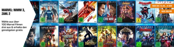 Saturn hat heute noch eine weitere Aktion gestartet eine Marvel 3 für 2 Aktion (Auswahl aus über 100 Filmen)