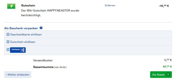 Gutscheincode: HAPPY18EASTER | Wendet diesen Gutscheincode im Warenkorb an und erhaltet den Rabatt.
