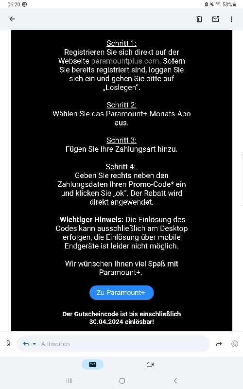 Patie (Gast) 08.04.2024, 15:50 #Paramount + Gutschein zu verschenken. Bitte im Kommentar mitteilen wenn einer den eingelöst hat.