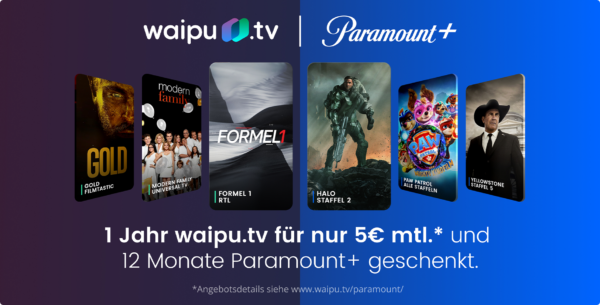 Krasses Angebot von waipu.tv, jetzt bekommt ihr für kurze Zeit waipu.tv Perfect Plus inkl. 1 Jahr Paramount+ für nur 5€/Monat (statt 20,98€/Monat)