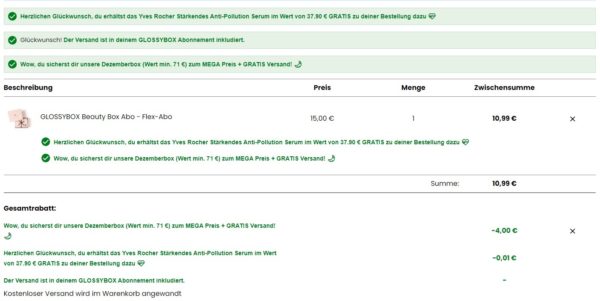 - Produkte im Wert von 71€ laut Anbieter
