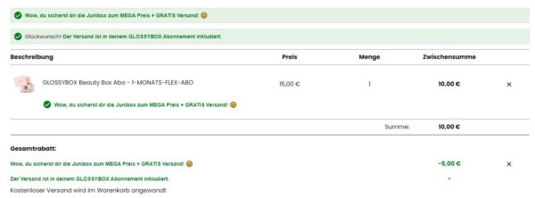 - Produkte im Wert von 71€ laut Anbieter