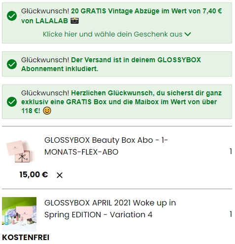 - GLOSSYBOX Beauty Box Abo 1 Monat für 15€