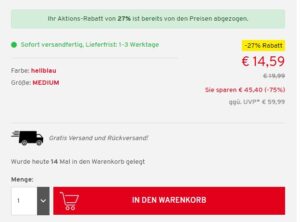 Der Versand wie auch eine eventuelle Retoure erfolgt kostenlos.