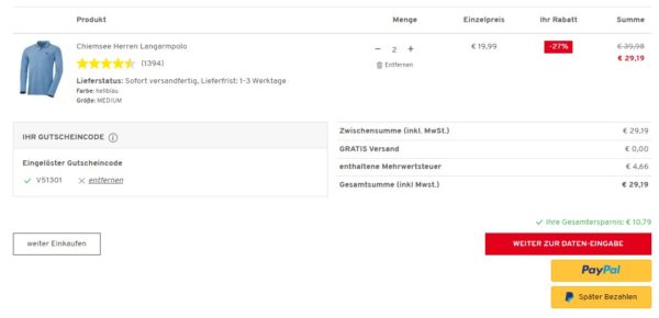 Der Versand wie auch eine eventuelle Retoure erfolgt kostenlos.