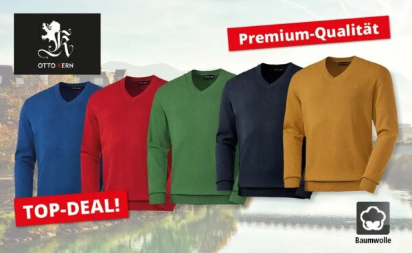 Neuer Deal seitens Vorteilshop, dort bekommt ihr 2x Otto Kern Herren Pullover mit V-Ausschnitt (verschiedene Farben) für 41,99€ (statt ~60€) Ersparnis ~18€