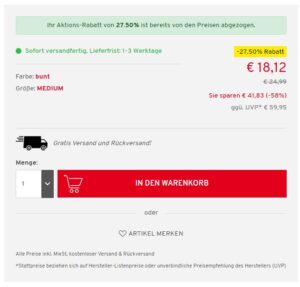 Der Versand wie auch eine eventuelle Retoure erfolgt versandkostenfrei.