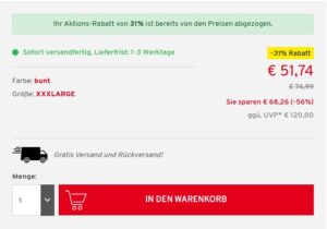 Der Versand wie auch eine eventuelle Retoure erfolgt kostenlos.