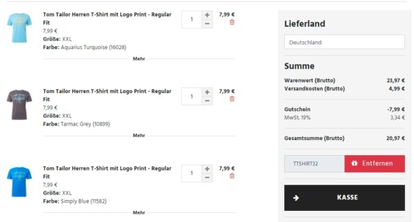Packt dazu einfach drei T-Shirts in den Warenkorb und verwendet den Gutschein-Code TTSHIRT32 im Warenkorb.