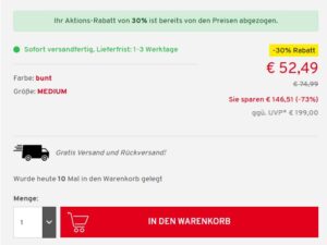 Der Versand wie auch eine eventuelle Retoure erfolgt kostenlos.