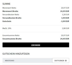 Mit dem genannten Gutschein entfallen die Versandkosten