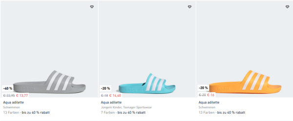 Bei Adidas gibt es die Adilette Aqua Dusch- & Badeschuhe ab 13€. (Vergleichspreis: 16€ – 25€ je nach Farbe)