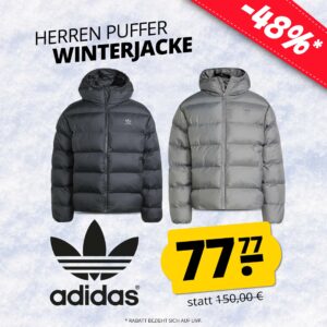 Passend zum kalten und nassen Wetter bekommt ihr bei SportSpar die adidas Originals Puffer Jacket Herren Winterjacke (verschiedene Farben) für 72,77€
