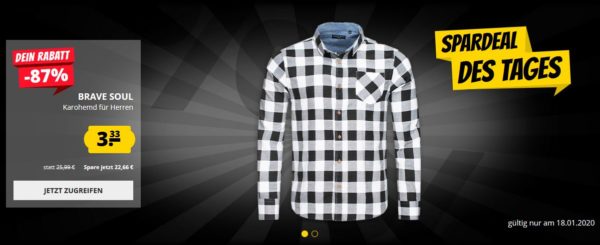 Bei SportSpar gibt es nur heute das Brave Soul Herren-Karohemd für 3,33€ (Vergleichspreis: ~12€) Ersparnis ~9€