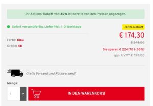 Der Versand wie auch eine eventuelle Retoure erfolgt kostenlos.