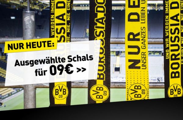 Im offiziellen BVB Fanshop gibt es heute ausgewählte Schals für 9€ (statt 14,95€).