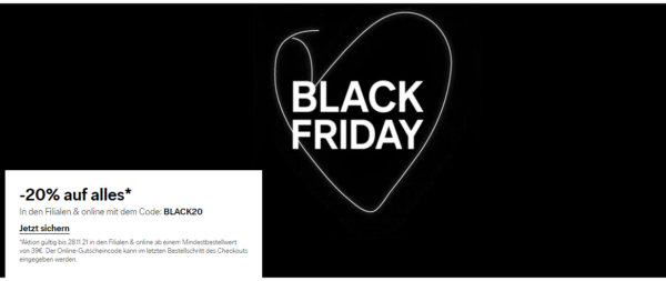 C&A – Black Friday: 20% Rabatt auf alles im Online-Shop erhalten