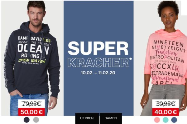 Camp David & Soccx: Bis zu 30% Rabatt auf Sweatartikel