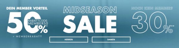 **Aktionsinfos: Exklusiv für Member – 50% Midseason Sale auf ausgewählte Kollektionen, nur vom 18.09. bis 06.10.25 – online und in allen teilnehmenden Stores. Im Onlineshop angegebener Artikelpreis beinhaltet den Rabatt von 30%. Im eingeloggten Status mit gültiger MemberCard und mit Eingabe des Aktionscodes MEMBER50 im letzten Bestellschritt des Checkouts, gibt es in Summe 50% Rabatt auf ausgewählte Kollektionen. MEMBERCLUB Rabatt gilt zusätzlich. Nur solange der Vorrat reicht.