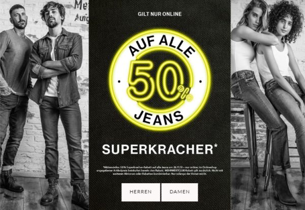 Im Onlineshop von Camp David & Soccx bekommt ihr nur heute 50% Rabatt auf Jeans.