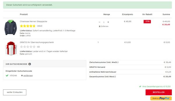 Bei Vorteilshop bekommt ihr gerade die Chiemsee Herren Steppjacke (verschiedene Farben, M-XXXL) für 39,49€ (regulärer Preis ~50€) Ersparnis ~11€