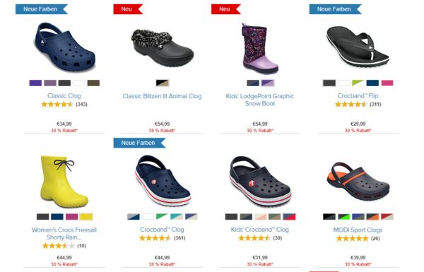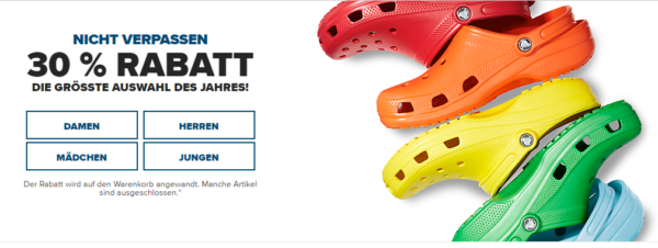 Bei Crocs bekommt ihr momentan 30% Rabatt auf ausgewählte Modelle