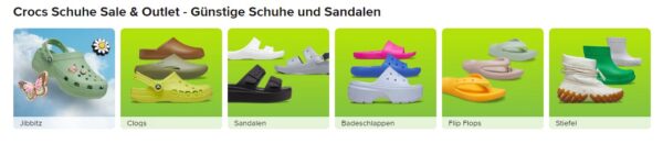 Die Marke bietet eine breite Palette von Modellen, einschließlich Sandalen, Flip-Flops, Slipper und Sneakers, die alle die gleiche Komforttechnologie nutzen. Crocs sind in vielen Farben und Mustern erhältlich, was sie zu einem vielseitigen Modeartikel macht. Ein besonderes Merkmal der Crocs-Schuhe sind die Jibbitz™-Anstecker, die in die Löcher der Clogs eingesetzt werden können, um die Schuhe zu personalisieren.